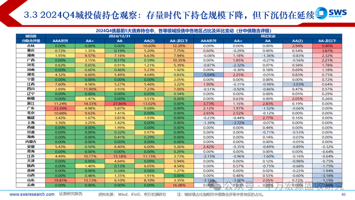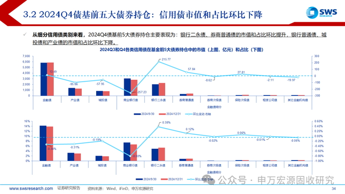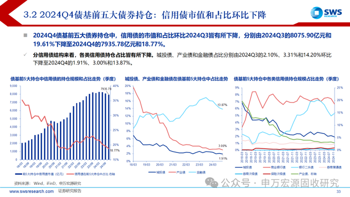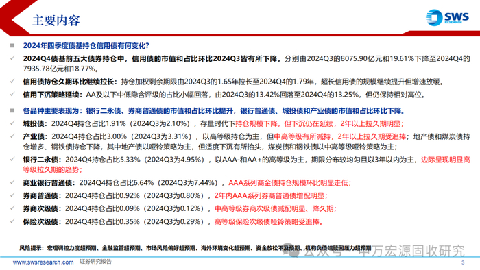 券商次级债:2024Q4持仓占比0.09%(2024Q3为0.12%),中高等级券商次级债减配明显、降久期;