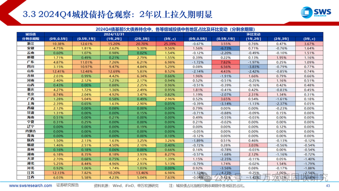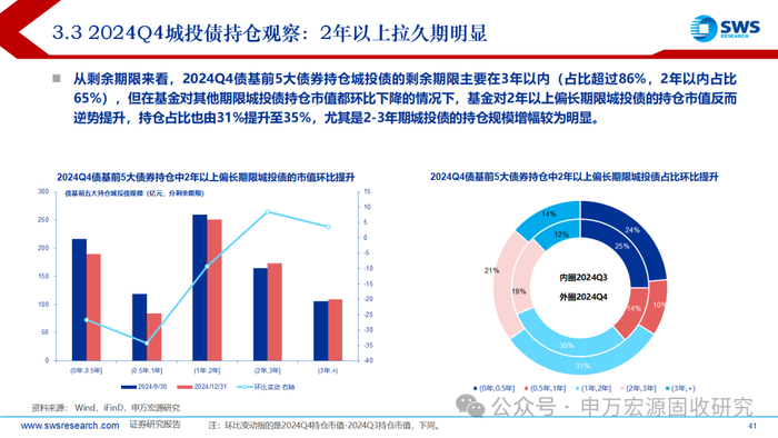 城投债:2024Q4持仓占比1.91%(2024Q3为2.10%),存量时代下持仓规模下降,但下沉仍在延续,2年以上拉久期明显;