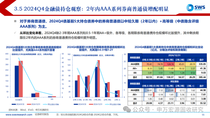 券商普通债:2024Q4持仓占比0.92%(2024Q3为0.80%),2年内AAA系列券商普通债增配明显;