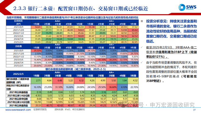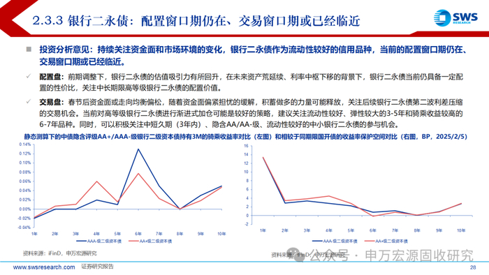 银行二永债:持续关注资金面和市场环境的变化,银行二永债作为流动性较好的信用品种,当前的配置窗口期仍在、交易窗口期或已经临近。