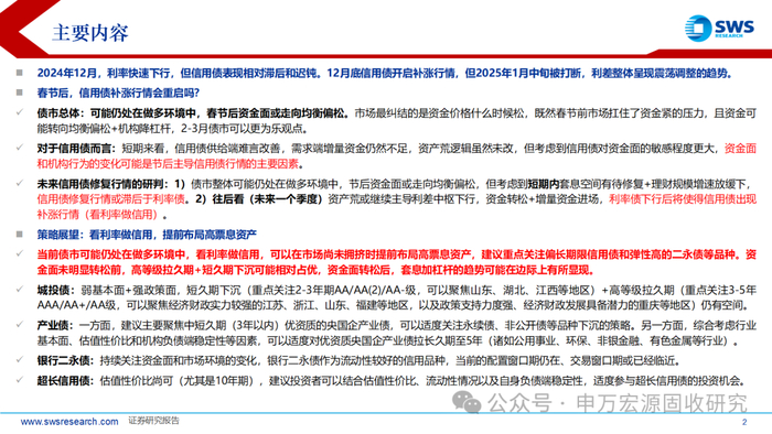 【申万固收|信用】看利率做信用,提前布局高票息资产 ——2025年2月信用债市场展望
