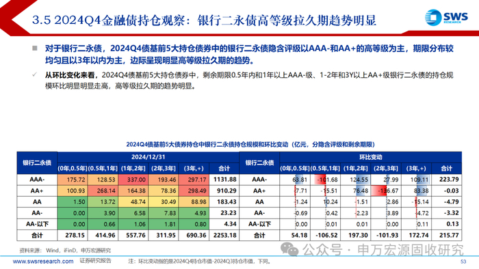 - 保险次级债:2024Q4持仓占比0.35%(2024Q3为0.29%),高等级保险次级债哑铃策略受追捧。