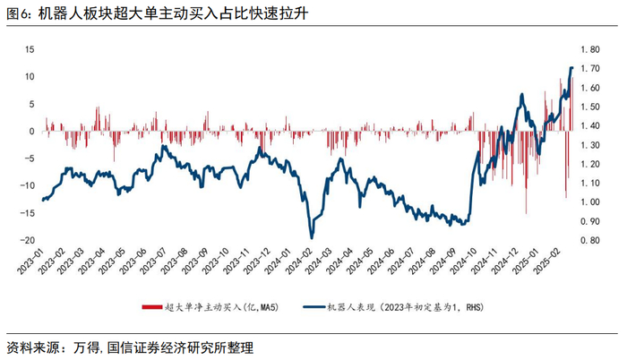 从量的维度看,当前TMT整体成交占比位于历史高位,机器人概念主动买入额占成交比同样到达近2年峰值,在2月月度策略中我们提到“交易DeepSeek争朝夕”,经过大半个月后火热演绎后,对于当前科技尤其是AI、机器人板块的三个核心关注点:即“当前情绪是否过热?”“当下行情偏向“生拔估值”还是“产业大重估?”“后续还有哪些受益方向,如何把握投资节奏?”,本期周思考将逐一解答。