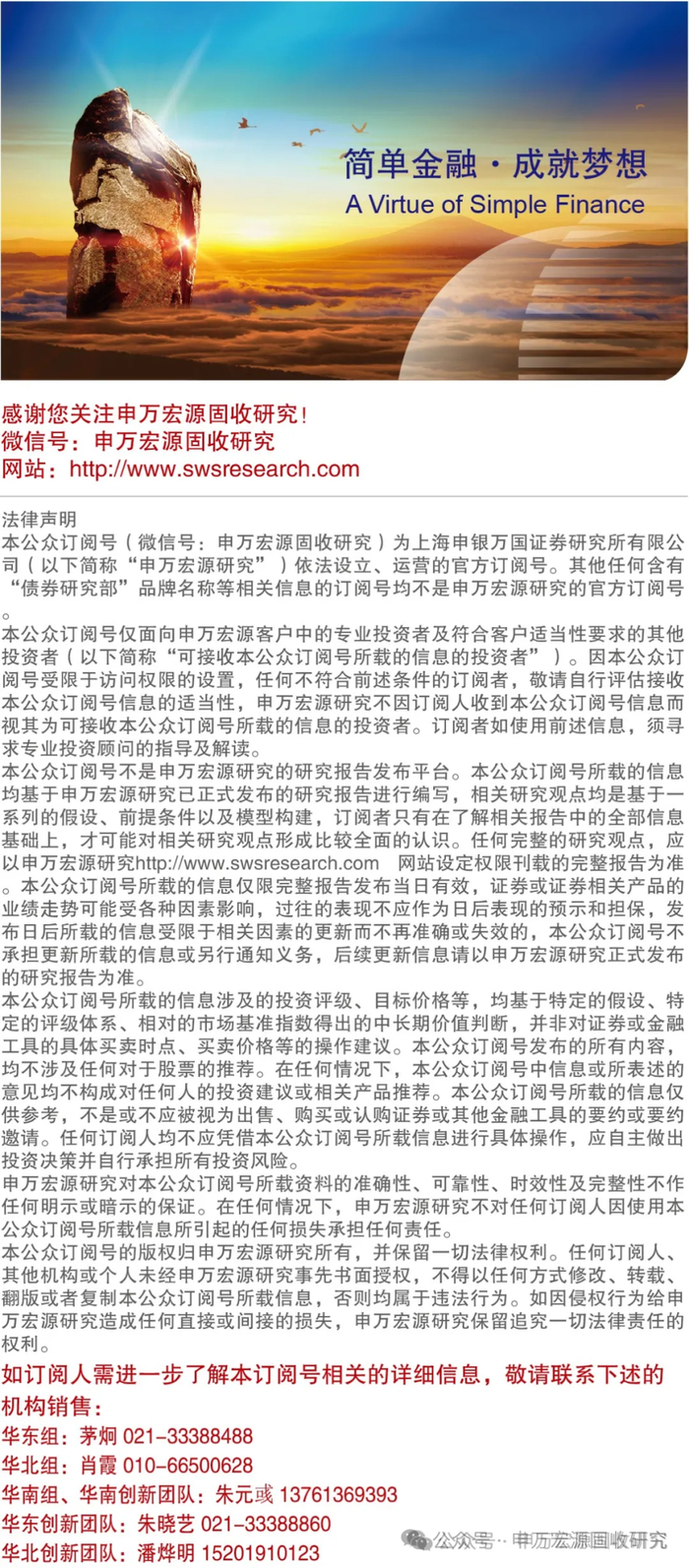 风险提示:警惕境外弱资质城投债不按时兑付的风险、宏观调控力度超预期、金融监管超预期、市场风险偏好超预期、海外环境变化超预期、机构负债端扩容不及预期或赎回压力超预期