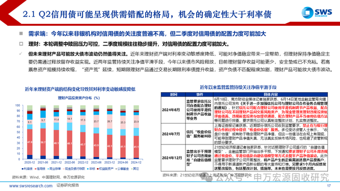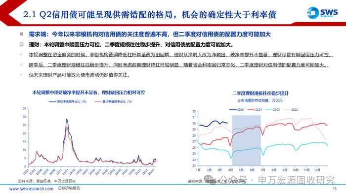 理财:本轮调整中赎回压力可控,二季度规模往往稳步提升,对信用债的配置力度可能加大。