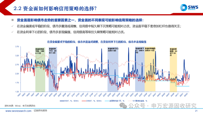 资金面是影响债市走势的重要因素之一,资金面的不同表现可能影响信用策略的选择: