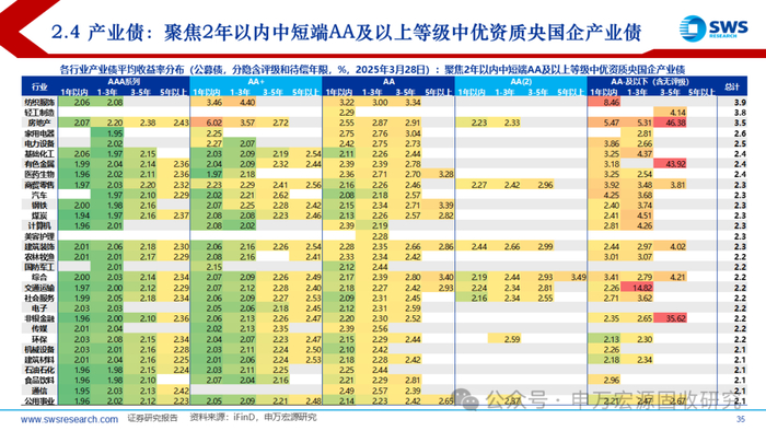 产业债:聚焦2年以内中短端AA及以上等级中优资质央国企产业债。