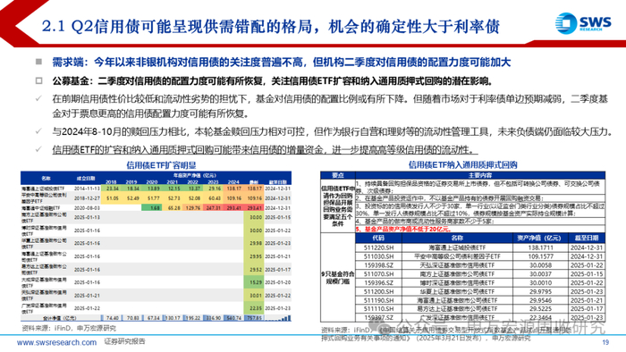 公募基金:二季度对信用债的配置力度可能有所恢复,关注信用债ETF扩容和纳入通用质押式回购的潜在影响。