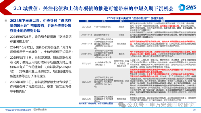 从历史上牛市之后的震荡行情经验来看,中短久期(3年以内)信用债下沉策略可能相对占优,普信性价比或优于银行二永债。在隐债置换、土储专项债逐步落地等化债政策推动下,城投领域的中短久期下沉策略的性价比更高。