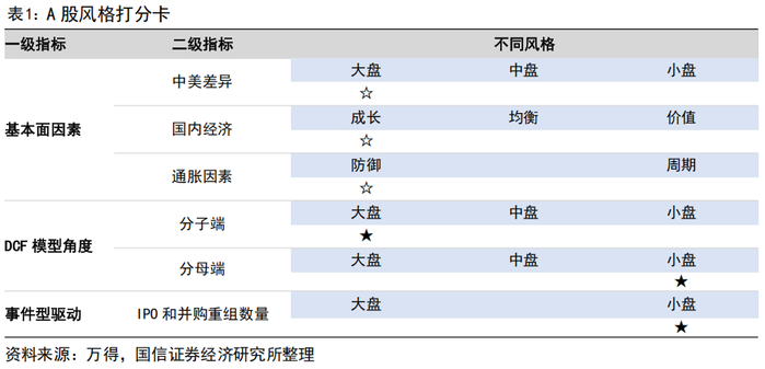 在基本面、DCF分子端和分母端、事件驱动三重因素的考虑下,市值风格偏向小盘成长。综上,我们对各类资产的推荐配置观点如下表所示,综合胜率和赔率,目前对资产配置的推荐顺序为:债市>商品>股市。