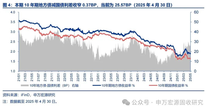 【申万固收】发行和净融资均下降,10Y和30Y减国债利差表现分化——地方债周度跟踪20250430
