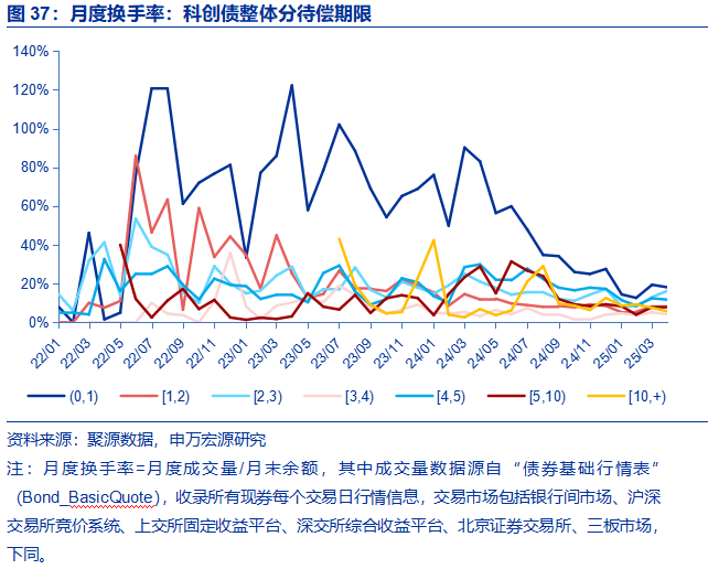 科创债的流动性可能并不弱,科创公司债流动性优于一般公司债,科创票据与普通中票流动性差异较小。从月度换手率来看,1年以内短期限的科创债流动性最好,5年以上长期限的科创债流动性也相对较好,但波动较大,各期限科创债2024下半年以来流动性皆有明显减弱,2025年以来成交活跃度有所回升。分类别来看,以1-3年期为例,科创公司债换手率在5%~25%,流动性相对较弱,但优于一般公司债;而科创票据的换手率较高,显示出较好的流动性,但2023年以来流动性有所下降,整体与普通中票流动性差异较小。