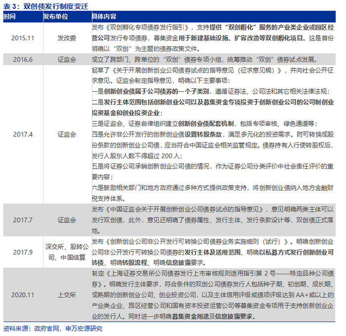 2016年3月,16苏方林、16普滤得和16苏金宏在上交所发行,是全国首批发行的双创债。2017年7月4日,证监会发布《中国证监会关于开展创新创业公司债券试点的指导意见》,标志着双创债正式落地。