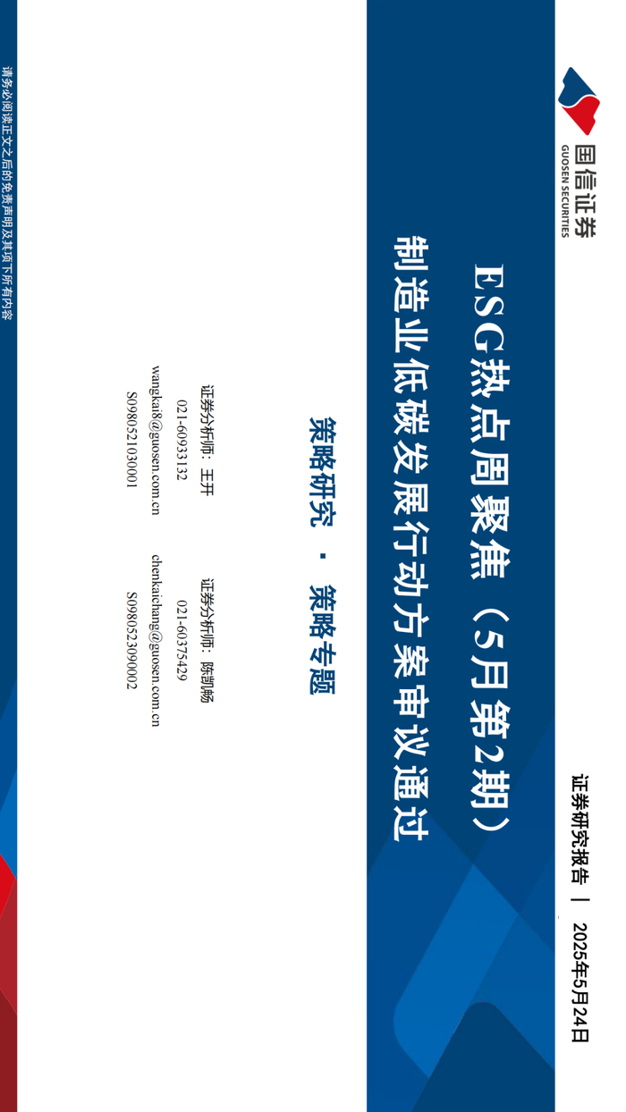【国信策略·ESG】制造业低碳发展行动方案审议通过