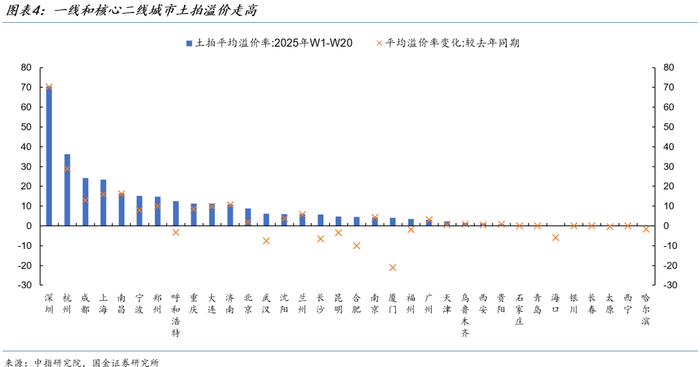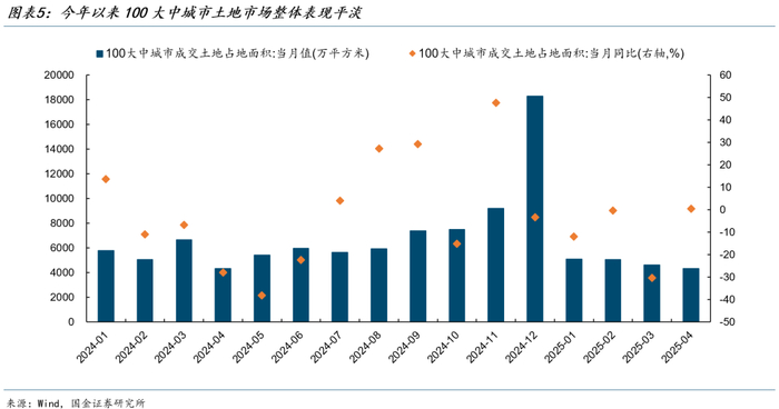 三是土拍市场表现分化。杭州、上海、深圳、北京、成都、郑州等城市部分地块高溢价成交,但多数城市土拍相对冷淡。1-4月,100大中城市土地成交面积同比降幅超过10%。
