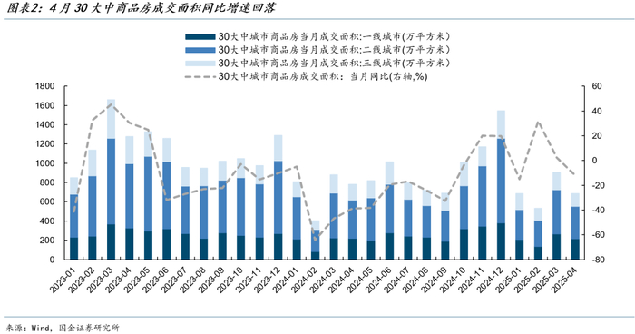 一是新房和二手房表现分化。4月新房销售面积同比-2.9%,环比降幅超过40%;二手房销售好于新房,4月18个样本城市二手房成交面积同比20.8%,环比下降7.3%。