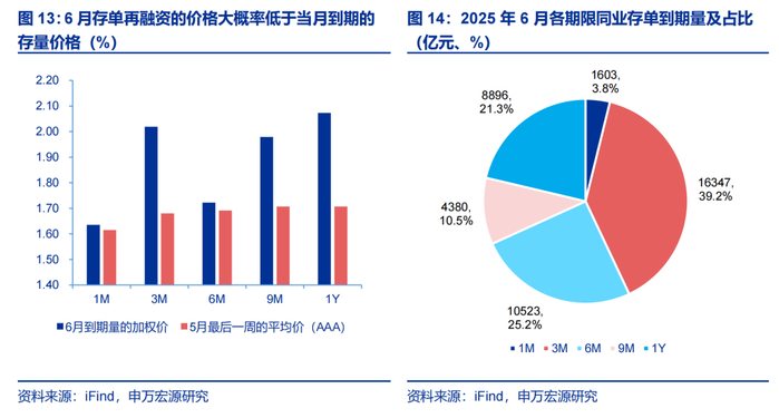存款降息带来的存单搬家及存单提价压力可能有限。存单价格越靠近 1.75% 或越具备配置价值。对存单压力,除关注新发行成本外,或也应从存量付息成本的视角看待。6 月存单再融资的价格大概率低于当月到期的存量价格,实质上对银行存单平均付息成本起到的是缓解作用,而这一点显然是有利于债市的。