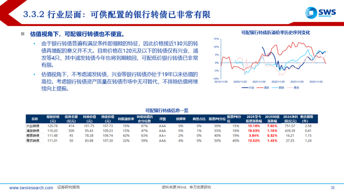 ✔ 价格在120元及以下的可配银行转债仅有兴业、紫银、青农三只转债。目前估值已处高位,资产质量无替代下不排除继续提振;