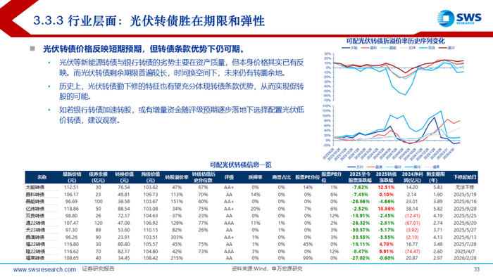 ✔ 光伏转债胜在期限长和弹性。价格已有反映行业短期预期,时间换空间下仍有转圜余地。