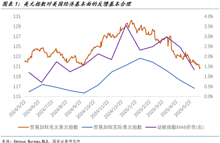 从美国经济的动能指数来看,进入5月后,环比折年增速又跌回到了去年9月的水平,这也与同期的美元指数走势极为一致(相关性0.76),这意味着美元指数对美国经济基本面的反馈基本“合理”,并不极端。