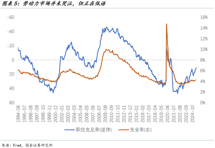 总的来说,美国未来的降息路径正在朝着“劳动力市场滞后下行”的情形展开,距离降息只差一个“非农走弱”。我们并不认为有任何关税通胀水平会阻碍该情形下的降息,因为发生关税通胀的前提是从就业到消费的链条需要稳固,而这一点目前来看越来越难出现。