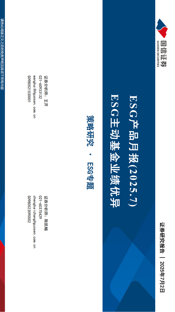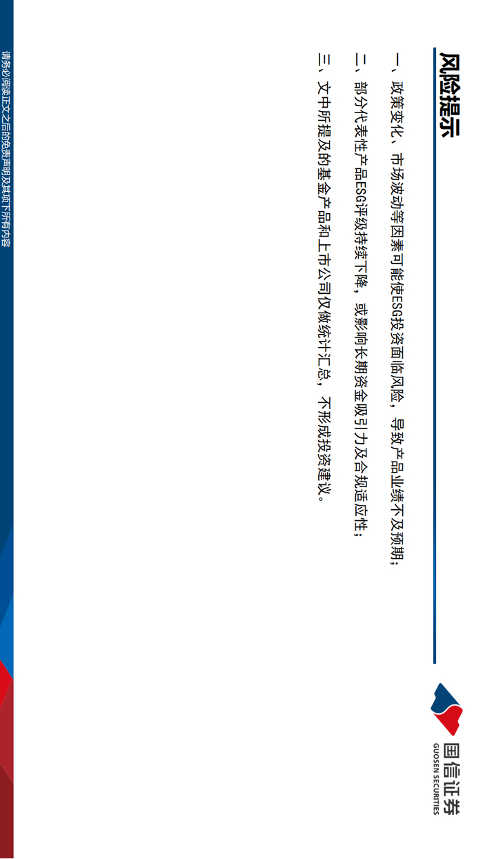 风险提示:一、政策变化、市场波动等因素可能使ESG投资面临风险,导致产品业绩不及预期;二、部分代表性产品ESG评级持续下降,或影响长期资金吸引力及合规适应性;三、文中所提及的基金产品和上市公司仅做统计汇总,不形成投资建议。