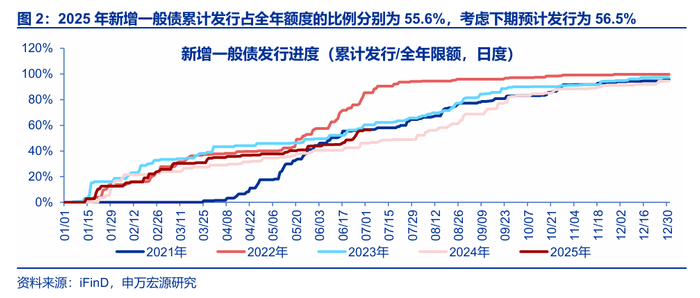 本期新增地方债发行明显加速,预计下期发行将放缓,当前累计发行进度低于2023年同期但高于2024年同期。截至2025年6月27日,新增一般债/新增专项债累计发行占全年额度的比例分别为55.6%和48.0%,考虑下期预计发行为56.5%和49.2%。2024年累计发行进度分别为 42.9%/36.6%和 46.6%/38.5%,2023 年累计发行进度分别为57.3%/54.2%和 60.3%/57.2%。