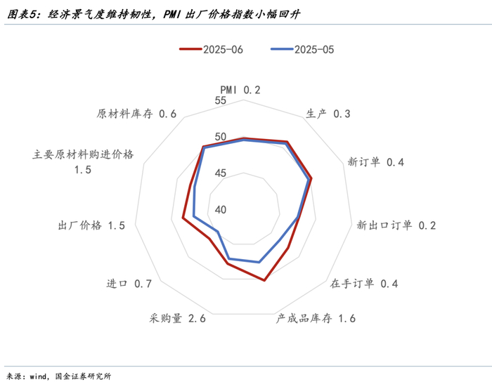 其中:基础原材料行业景气度好转,主要受益于专项债等逐渐落地形成实物工作量。出口订单小幅好转,可能与当前中国依旧处于关税豁免期,部分海外贸易商继续抢出口、抢转口有关。