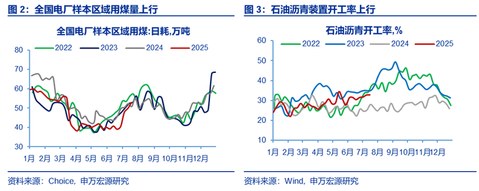 工业生产:生产总体上行。从上游来看,本期全国电厂样本区域用煤量周度环比上行6.18%,石油沥青装置开工率周度环比上行0.10pct至32.80%,高炉开工率周度环比上行0.35pcts 至83.48%,粗钢产量周度环比下行1.5%。从地产链来看,螺纹钢开工率周度环比下行0.70pcts至42.93%,浮法玻璃开工率与上周持平为75.66%,磨机运转率周度环比下行 1.09pcts 至 35.90%。从泛消费品链来看,涤纶长丝开工率周度环比上行1.17pcts至92.94%,PTA 开工率周度环比上行0.41pcts 至 80.76%,甲醇开工率周度环比下行1.00pcts至80.60%。从汽车链来看,汽车半钢胎开工率周度环比上行3.07pcts至75.99%,汽车全钢胎开工率周度环比上行0.54pcts至65.10%。
