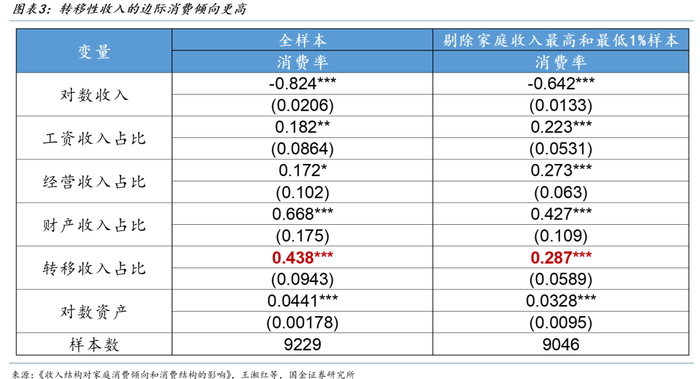 第二,育儿补贴本质上是增加居民部门的转移性收入,提高其消费能力和消费意愿。国内研究经验证实了转移性收入和财产性收入的边际消费倾向显著高于工资性收入和经营性收入,年内育儿补贴的发放将提高对应家庭消费倾向0.2个百分点。2024年我国居民平均消费倾向为68.3%,今年发放1200亿元左右的育儿补贴将形成855亿元的消费支出,拉动社零增速0.18个百分点。