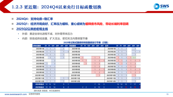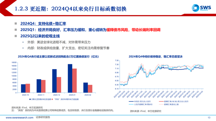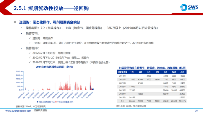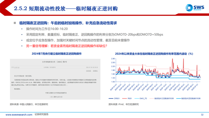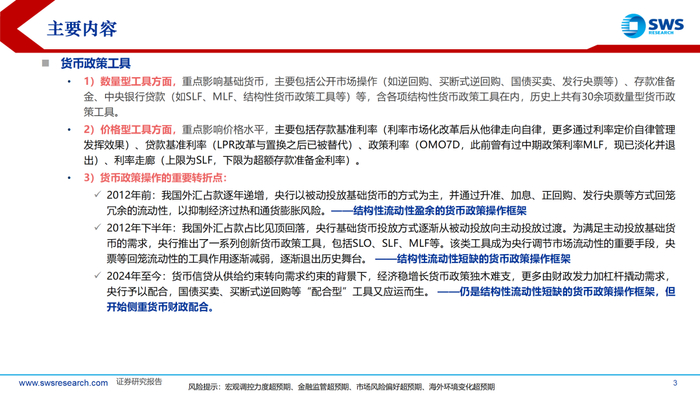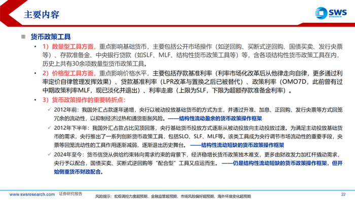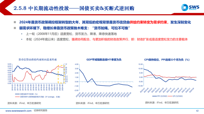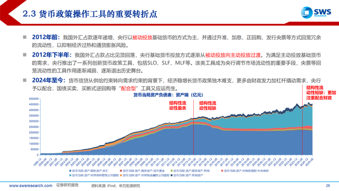 2024年至今:货币信贷从供给约束转向需求约束的背景下,经济稳增长货币政策独木难支,更多由财政发力加杠杆撬动需求,央行予以配合,国债买卖、买断式逆回购等“配合型”工具又应运而生。——仍是结构性流动性短缺的货币政策操作框架,但开始侧重货币财政配合。