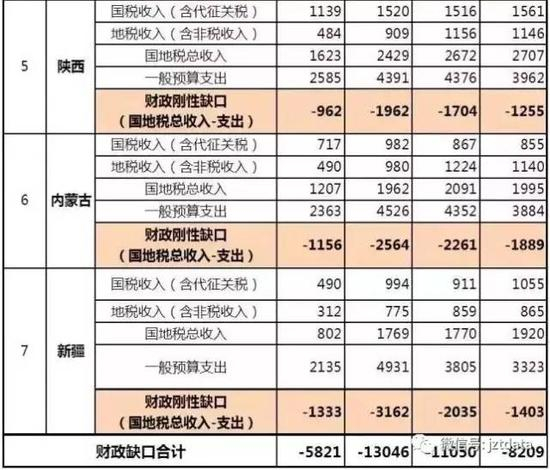 我们将这25个省市的财政缺口数据汇总起来,我们将得到一个很惊人的总数,见下表: