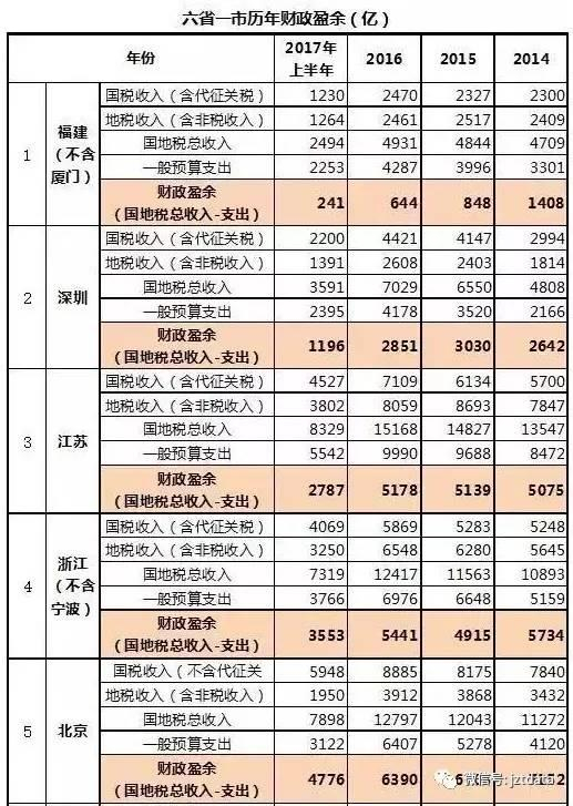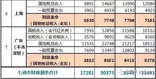 我直接放出这六省一市的收支数据表好了: