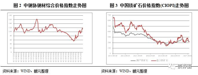 在经历了2015年钢铁行业发展“严冬”期后,2016年开始行业发展有所回暖,中钢协钢材综合价格指数从2016年初的58.12上升至2016年末的99.51,2017年9月29日钢材价格指数继续升至113.82。钢铁生产最重要的原材料—铁矿石的价格2016年也在上升,2017年国内和进口铁矿石价格先扬后抑,当前价格有所波动,2017年9月29日,国内和进口铁矿石价格指数分别为228.81和225.92。虽然铁矿石价格有所下降,但煤炭、焦炭和废钢等燃料价格环比有所上涨,钢铁企业降本增效仍面临一定压力。