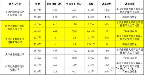 譬如,2016年天津冶金集团轧三钢铁有限公司(天冶轧三)0.5-1年的账龄,到了次年如何就变成了2-3年。