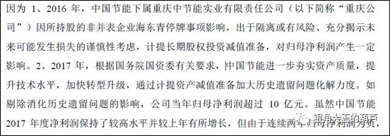对于2017年归母净利润大额亏损,公告解释称是根据国务院国资委有关要求,中节能进一步夯实资产质量,提升技术水平,加快转型升级,通过计提资产减值准备加大历史遗留问题化解力度。