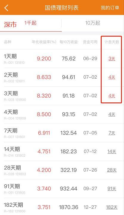 简单一点说,国债逆回购相当于是无风险的按每天交易的利率借钱给各类机构,分有1天、2天、3天等多个期限。比如今天放款(卖出)你的资金,卖1天期的204001(沪市)或131810(沪市),目前都是约10%的年化收益率,算上周末共计3天计息。