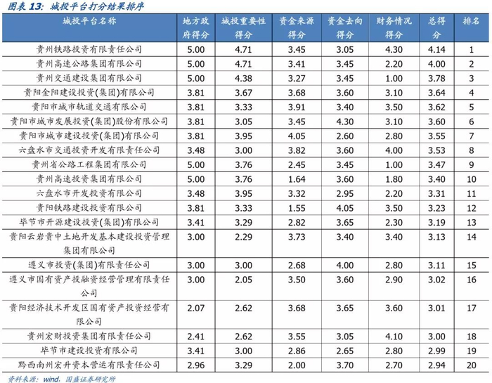 四、贵州省城投平台打分排序