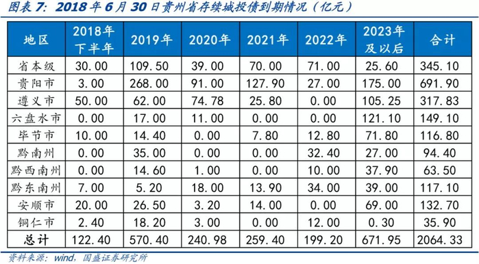 分地区来看,贵州省各市州(区县级城投按所属市州来算)的城投平台存量债余额从大到小依次为贵阳市691.9亿元、省本级345.1亿元、遵义市317.8亿元、六盘水市149.1亿元、安顺市132.7亿元、黔东南州117.1亿元、毕节市116.8亿元、黔南州94.4亿元、黔西南州63.5亿元、铜仁市35.9亿元。
