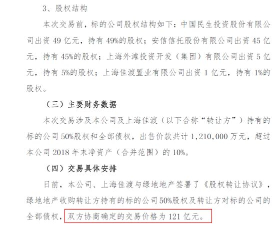 具体而言,2月14日,中民投出售了持有4年多的优质资产上海董家渡项目,接盘方为绿地集团,为中民投带来121亿元现金流入。