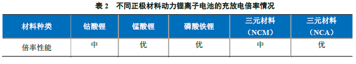 充放电倍率指电池在规定时间T放出额定容量Q时所需电流值的倒数,通常以字母C表示,该数值越大表示电池充放电能力越强,但高倍率充放电将加速电池容量衰减,降低电池的安全性能。影响充放电倍率的因素主要为锂离子扩散能力、电极电阻、电解液的传导能力及稳定性。锂离子扩散能力方面,锂离子通过电解液在正、负极的扩散和移动,因此选择锂离子扩散系数比较高的正、负极材料及电解液材料可促进电池的倍率性能,目前主要正极材料中,锰酸锂、磷酸铁锂和算原理的倍率性能较为优异。电极电阻方面,在正极活性物质内部会添加导电剂,从而降低活性物质之间、活性物质与正极基体/集流体的接触电阻,提升倍率性能。