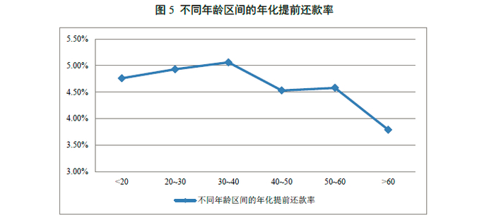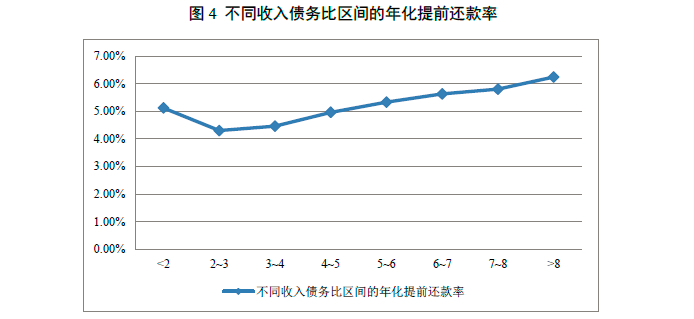 总体来看,借款人收入的差异将影响房贷提前还款率。具体而言,虽然提前还款率与借款人收入之间未表现出直接的线性关系,但是在剔除贷款额度等因素的影响之后,提前还款率与收入债务比呈现出了正相关关系,说明收入对房贷提前还款率具有正向影响。同时,考虑到中青年旺盛的住房改善型需求,收入因素对这类人群提前还款率的影响将更大。