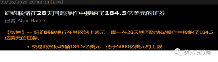 第二类是回购公开市场操作 (Open market operations, 简称OMO,包括隔夜的OMO和定期的OMO)。回购的公开市场操作范围是非常有限的,联储只能跟24家一级交易商(见文末链接)进行操作。要看这个政策有没有起到效果,可以看一级交易商认购的踊跃程度,也可以看这个政策之后机构间回购价格有没有企稳。举个例子,这周日联储降息100bp,同时追加了OMO的额度,但是!隔夜OMO和定期OMO的认购都不踊跃,大幅度的“低于上限”: