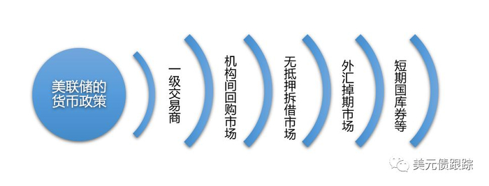 实际的美元传导过程是一个相当复杂、不同市场参与主体相互交叉的过程,比如参与机构回购的也同时参与拆借和外汇掉期,或者在回购市场上放钱的机构也会同时投资CP,不同市场当中也会不时出现套利机会,因此以上五圈涟漪的比喻并不严谨,只是为了便于描述和理解传导过程的大致面貌。