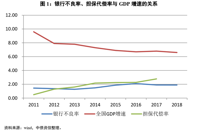 作为服务于企业融资的行业,融资担保行业与银行等金融行业一样,受宏观经济影响较大,呈现明显的周期性。从图1可以看出,商业银行不良贷款率与担保代偿率走势基本保持一致,且与国内GDP增速走势相反。具体来看,随着近年国内宏观经济增速放缓,银行不良贷款率和担保代偿率均呈上行态势。