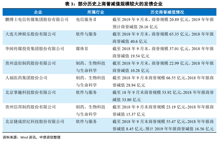 在证监会加强对商誉减值的会计监管后,尽管部分上市公司及发债企业在2018年年报中对商誉计提大额减值准备,直接导致当期盈利的大规模亏损;但仍需关注商誉规模较大的企业,在2019年年报中的商誉减值情况。