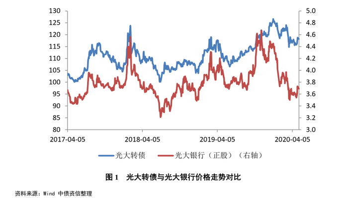 传统教学上一般认为影响转债价格的因素众多,正股价格、正股波动率、债底收益率等,并由此建立了许多可转债估值分析模型,如经典的BS公式模型、二叉树模型等。但在实际投资过程中,教科书中的投资分析方法一般更适用于国外转债投资,国内市场由于缺乏卖空机制,难以进行对冲套利,上述分析模型也就难以使用,因此国内投资者很少这样分析转债。在实践中,正股价格上涨带动的转债价格上涨是国内转债最根本的盈利模式,投资转债最重要的就是对正股走势的判断。分析转债大体可以分为3个方面,(1)正股走势判断(最为根本);(2)债底价值估算(估算转债价格底部);(3)转债条款分析(主要为下修条款、回售条款、赎回条款)。如下图所示,光大转债价格与光大银行正股价格走势高度相关,走势几乎完全一致。