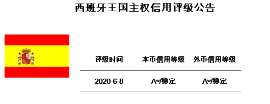 东方金诚国际信用评估有限公司(以下简称“东方金诚”)评定西班牙王国(以下简称“西班牙”)政府长期本、外币主权信用等级Aw,评级展望稳定。