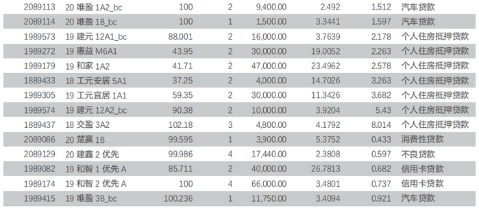 20建元2A1_bc、A2_bc、A3_bc、B_bc优先的发行利率分别为2.49%、2.85%、3.2%、4.45%,与可比短融中票利差分别为-60bp、-24bp、11bp、136bp。