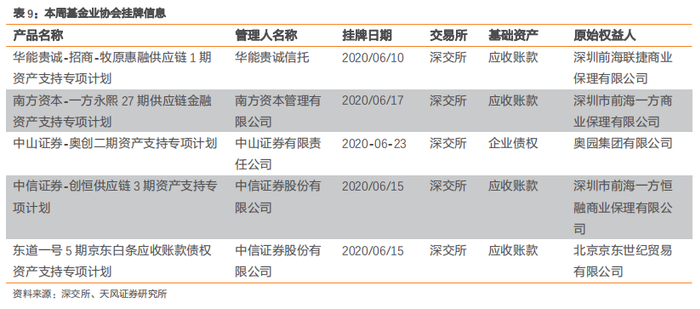 本周有5期资产支持专项计划在交易所挂牌,均在深交所,本次挂牌转让产品中,基础资产均为应收账款。